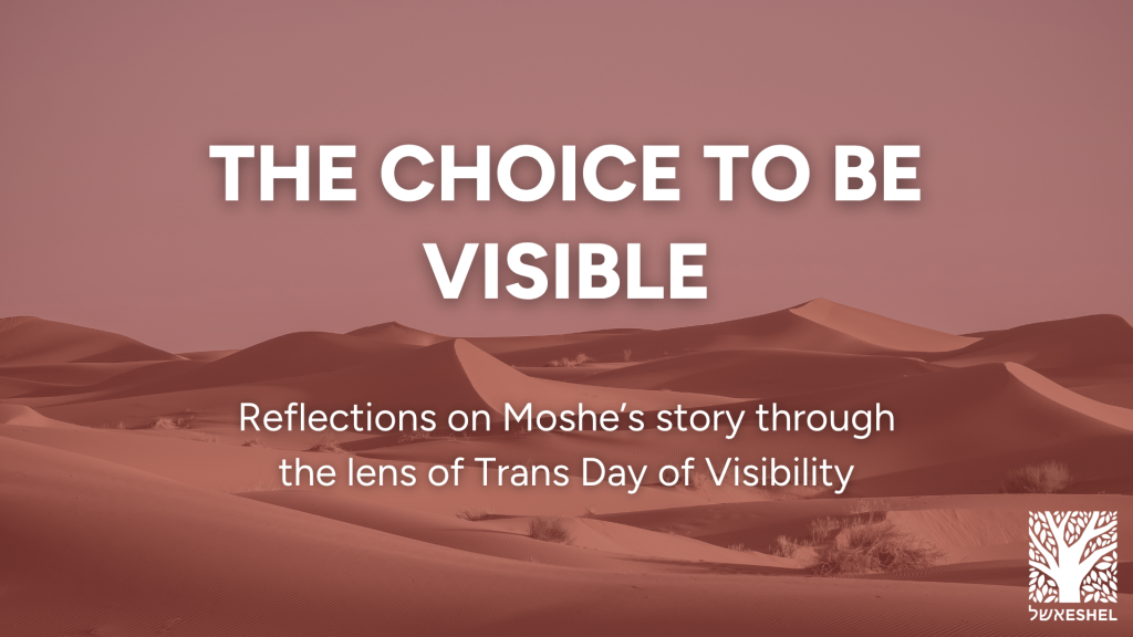 When a trans person hides, it is understandable. It is rational. The choice to be visible is not an easy one, and it comes with its own risks and costs. But that hiding is hopefully temporary. When we allow ourselves to be visible as trans people, because our community supports us, we can all move closer to collective freedom. This Pesach, I hope we can all work towards the systemic changes needed to secure the safety, freedom, and autonomy that makes it not just possible, but empowering, to be truly seen.